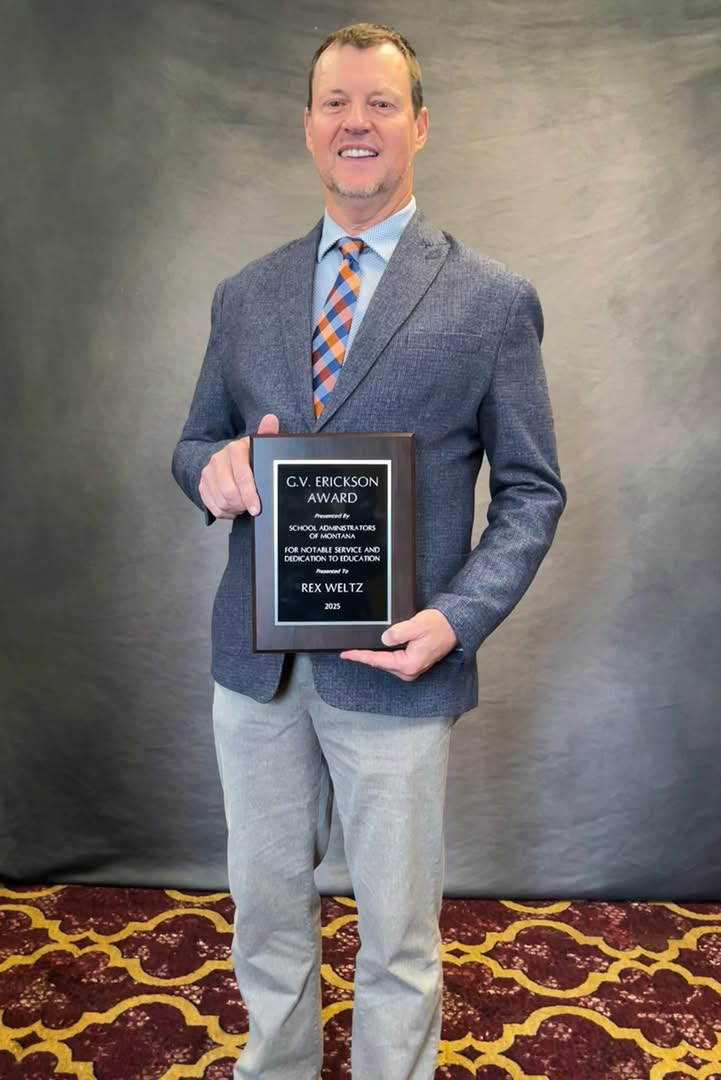 Dr. Rob Watson, SAM Executive Director, stated, “Rex Weltz exemplifies the spirit of the G.V. Erickson Award through his steadfast leadership, compassion, and commitment to public education. His vision and integrity have strengthened not only his district but also the broader Montana education community. SAM is honored to recognize Rex with this award, our highest tribute to an educational leader.”
